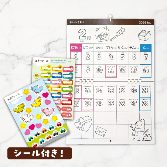 一年を通して楽しく「季節」と「暦」にふれられる、12ヶ月分の知育ぬりえカレンダーです。